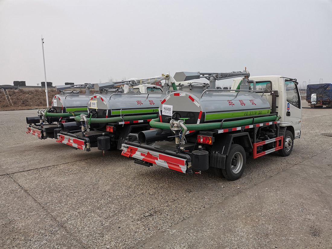 上裝配置:罐體容積約3立方,武鋼Q235自動焊接,壁厚5mm,封頭6mm,標配5噸油泵真空泵,吸力大、吸程遠,可自吸自排。標配防溢閥,視糞窗,罐后自流口1個,罐旁洗手裝置,濯體頂吊桿270°旋轉,帶8米吸糞管1根。