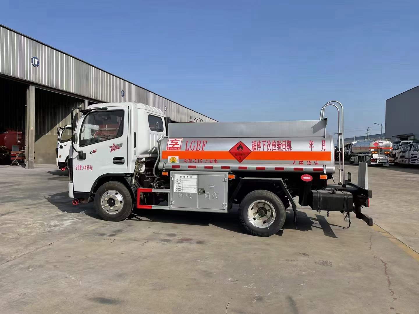 上裝配置: 嚴格按照公告尺寸制作罐體,罐體厚度大于等于 4.2mm,罐體材質:采用 Q235 優質碳鋼板材,標配專用齒輪油泵(可泵進泵出);標配通倉帶歐標全套下裝油系統(含 1 個歐標罐蓋,罐口內置呼吸閥,一個海底閥,1 個下裝卸油閥、1 個油氣回收閥、1 個油氣回收接口、1 個防溢流探桿和插座);罐體頂部兩側帶折疊升降防護欄,后置爬梯,操作箱內帶語音報**系統裝置,1 套氣動組合開關,防靜電盤;標配顏色灰色,罐體兩側正中貼橙色反光帶,貼三個“易燃液體”標識,安全告示牌,其它均為廠家標配。