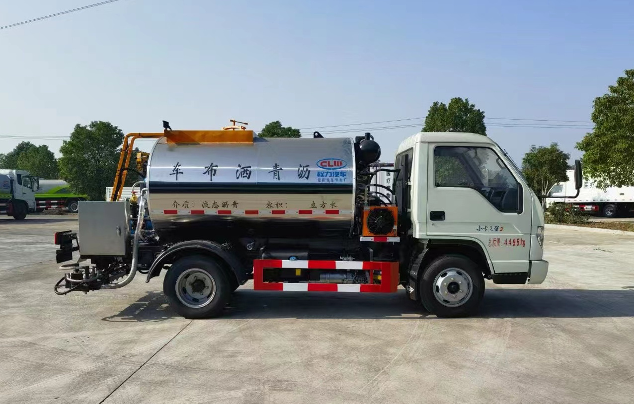 福田小卡之星3,5擋變速箱,650鋼絲輪胎。上裝罐體3立方,分全智能型、半智能型(標準型)、普通型,可對熱瀝青、乳化改性瀝青、乳化瀝青進行噴灑!
